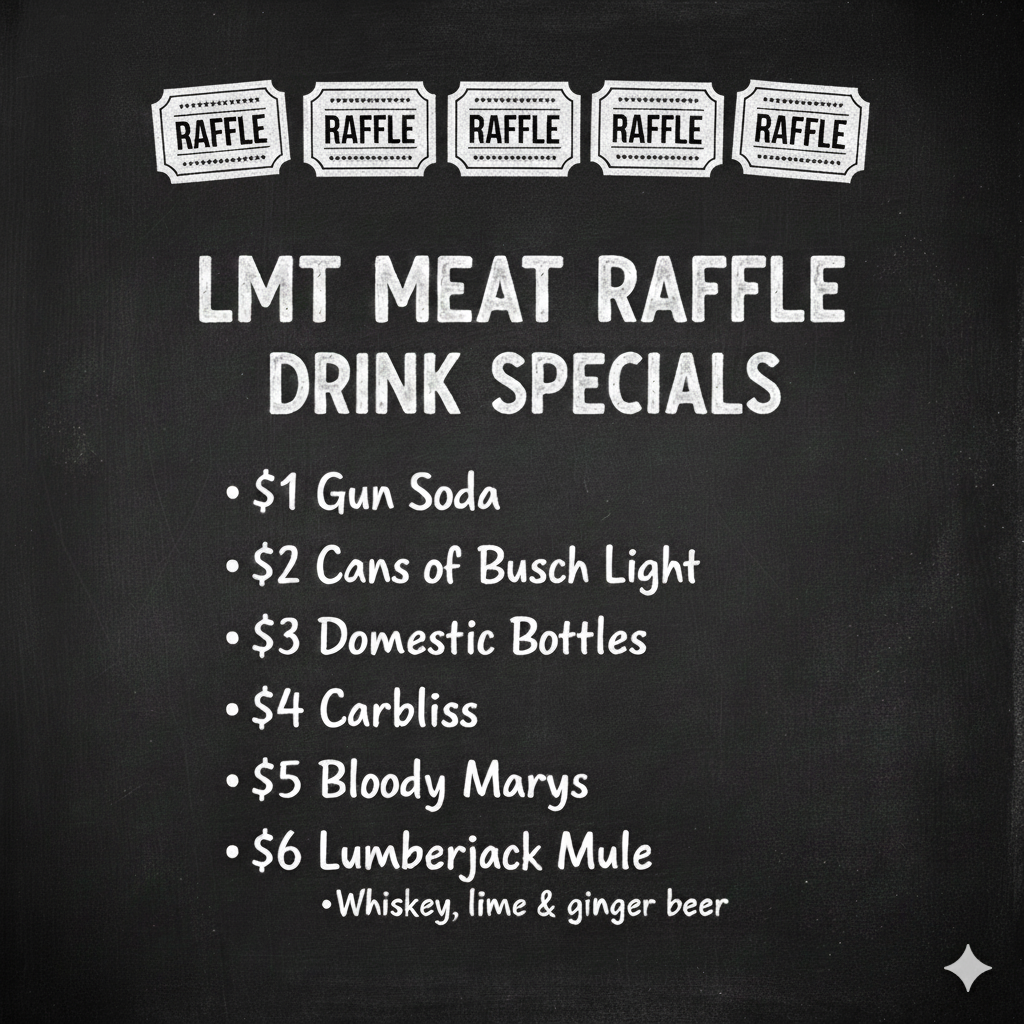 The Lumberjack Memorial Trails snowmobile club will be having a Meat Raffle. All of the fun will start on Saturday, January 3, 2026 at Water’s Edge Lodge, Crandon at noon. We will have meat raffles, 50/50 raffles and a few surprise raffles. This is a family friendly event so bring your holiday guests and lets start the season off with some great prizes. Hope you are able to join us and support the LMT with the proceeds going to our Trail Maintenance.
