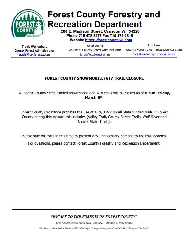 Trails close Friday, March 6, 2026 at 8:00 a.m.